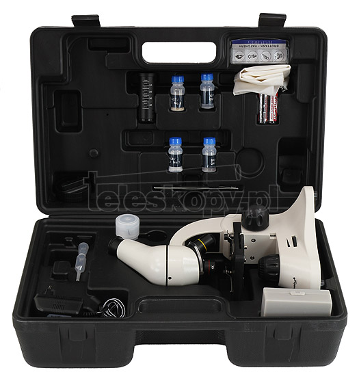 • powiększenia: 64x, 160x, 640x oraz z Barlowem: 128x, 320x, 1280x