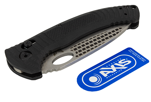 W nożu zastosowano flagową blokadę marki Benchmade, system Axis-lock, który charakteryzuje się ogromną wytrzymałością na obciążenie dynamiczne, wygodą i łatwością obsługi oraz niską wrażliwością na zabrudzenie.
