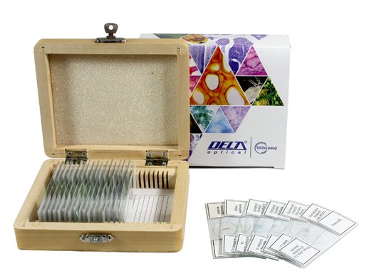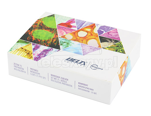 Zestaw 25 sztuk wysokiej jakości preparatów biologicznych zapakowanych w lakierowane, drewniane pudełko. Zestaw zawiera zarówno tkanki roślinne jak i zwierzęce.