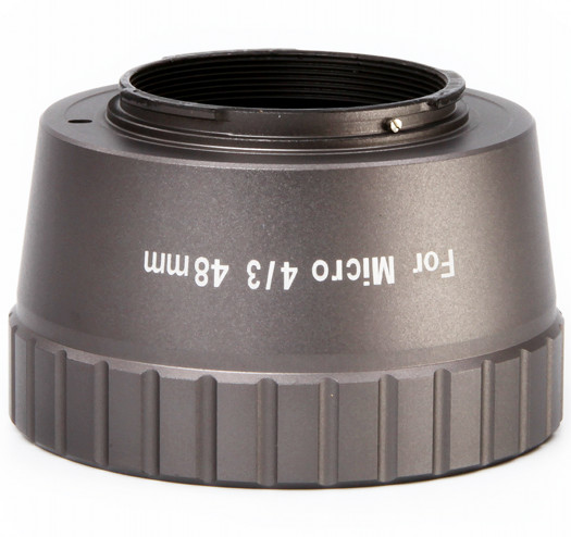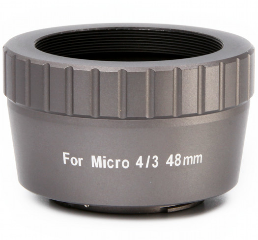 Pierścień z gwintem M48x0,75 z jednej strony i bagnetem micro 4/3 z drugiej. Bez luzów, ugięć, szpar, za to z szerokim przelotem niezbędnym do astrofotografii z dużymi matrycami.