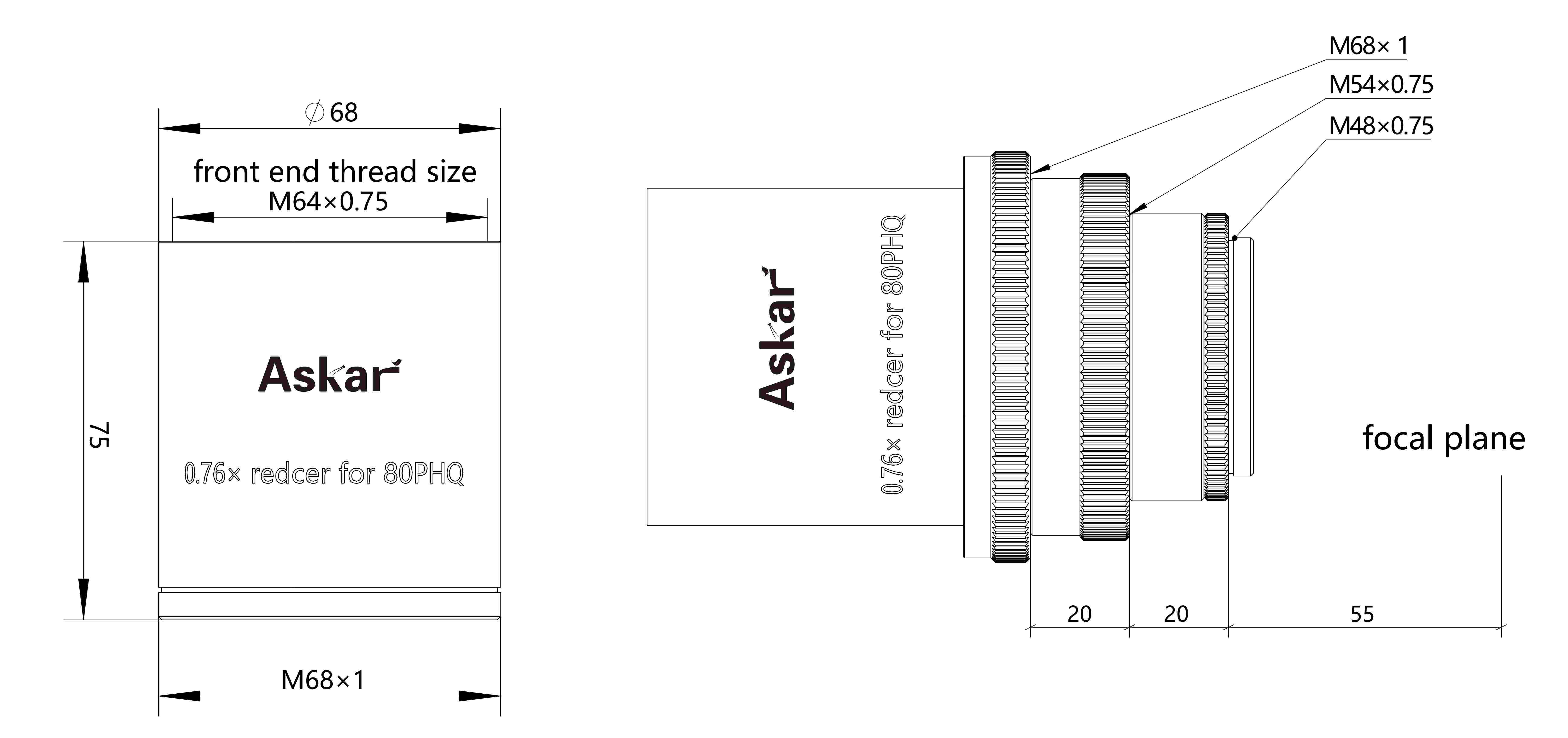 • reduktor ogniskowej dedykowany do astrografu Askar 80PHQ kompatybilny z kamerami i aparatami pełnoklatkowymi