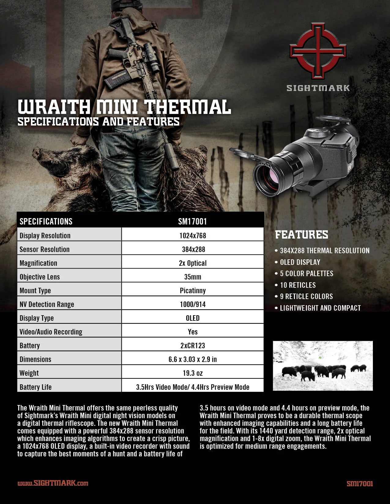 Sightmark Wraith Mini 2-16x35 to doskonałe narzędzie dla każdego, kto poszukuje precyzyjnego celownika termowizyjnego o kompaktowych rozmiarach i doskonałej jakości obrazu. Ten kompaktowy celownik został opracowany specjalnie dla myśliwych i strzelców sportowych poszukujących niezawodnego sprzętu gotowego do pracy w każdych warunkach.