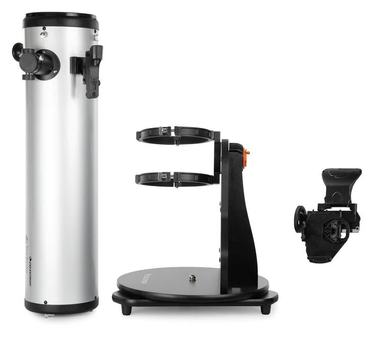 Stabilna podstawa Dobsona zapewnia solidną bazę dla teleskopu StarSense Explorer. Stołowa wersja klasycznego montażu Dobsona jest kompaktowa, lekka i łatwa do transportu, co czyni ją doskonałą do podróży. Niska konstrukcja podstawy ułatwia łatwy dostęp do okularu, zwłaszcza dla dzieci. Można także umieścić podstawę na stabilnej powierzchni, takiej jak stół lub maska samochodu, aby podnieść ją do wygodnej wysokości do obserwacji.