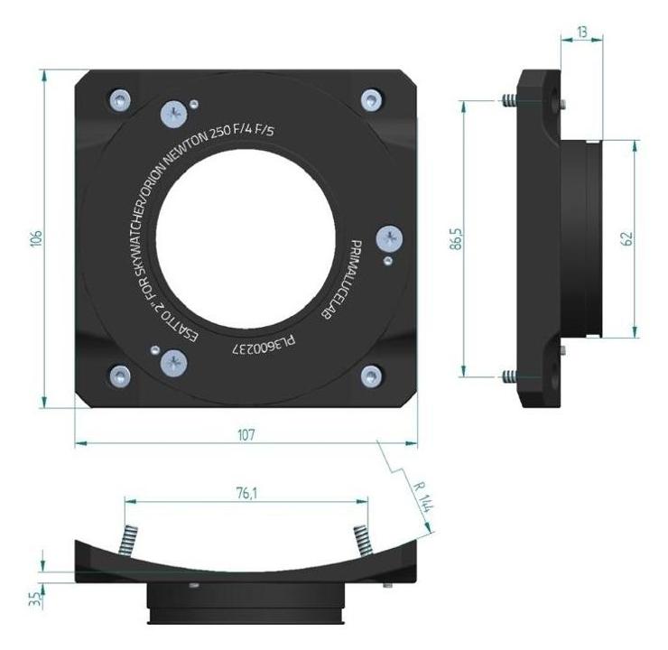 Adapter PL3600237 pozwala w pełni wykorzystać precyzję i zdalne sterowanie wyciągu ESATTO 2" w popularnych 10-calowych Newtonach, zapewniając stabilne mocowanie i dokładną regulację osi optycznej niezbędną w astrofotografii.
