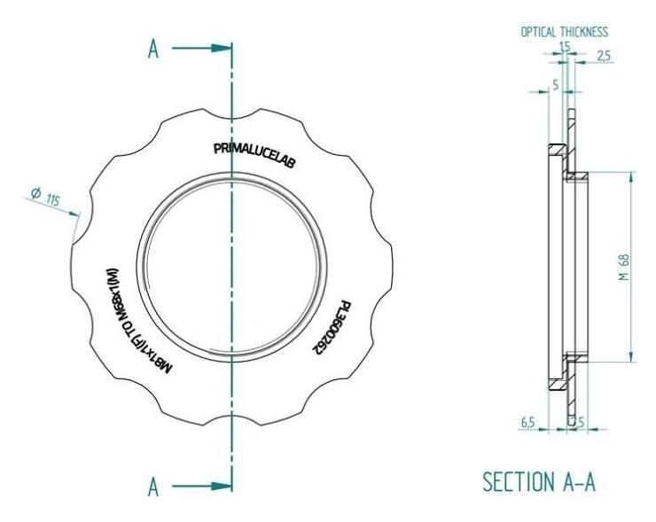 PL3600262 to praktyczne akcesorium, gdy chcesz połączyć szeroki wyciąg ESATTO 3" lub rotator ARCO 3" z korektorami, reduktorami lub innymi urządzeniami w standardzie M68, zachowując pełną regulację back-focusu i sztywne, osiowe połączenie optyczne.