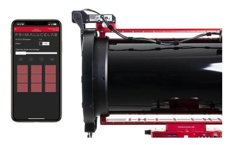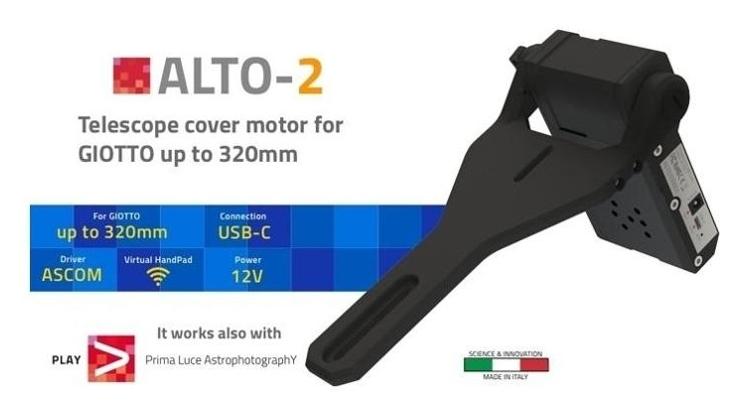 ALTO-2 telescope cover motor for GIOTTO ≤ 320 mm (PrimaLuceLab, SKU: PLLALTO2) zamienia ekrany kalibracyjne GIOTTO 150 – 320 mm w w pełni zautomatyzowaną pokrywę teleskopu. Napęd umożliwia zdalne otwieranie i zamykanie klapki oraz wykonanie płaskich klatek (flat-frames) bez konieczności fizycznej obecności przy sprzęcie.