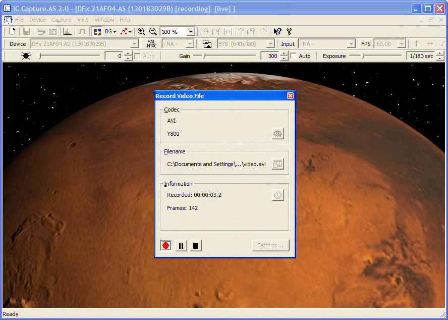 • Nagrywanie sekwencji obrazów i zapisywanie jako bezstratne, nieskompresowane pliki AVI; takie pliki można następnie poddać obróbce w innych programach astronomicznych, takich jak na przykład RegiStax.