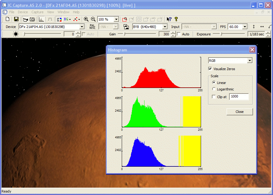 IC Capture.AS to program stworzony przez The Imaging Source i został specjalnie stworzony do obsługi kamer CCD dla teleskopów. Program ten dodawany jest do każdej kamery sprzedawanej w naszym sklepie. Pozwala on na:
